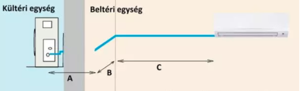 A két egység közötti csőszakasz hossza nem haladja meg a 3 métert!
